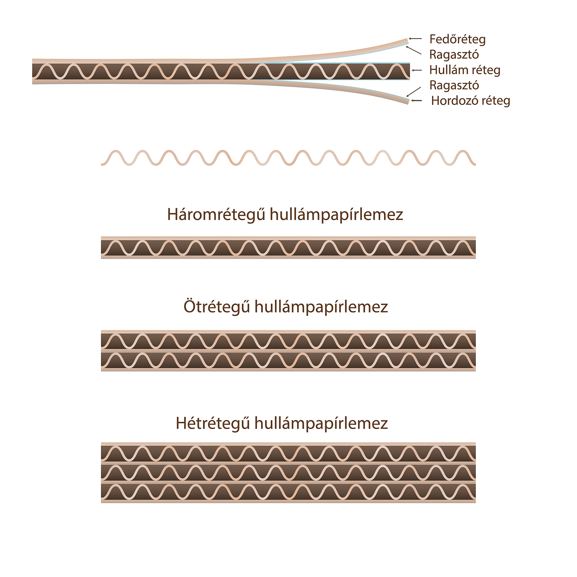 A hullámpapír két fő összetevőből épül fel: síkpapír és hullámpapír.
